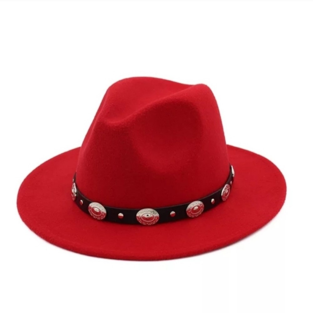 Sombrero Rock Ahimsa-Chic, Sombrero de fieltro con cinto de eco cuero negro con aplicaciones plateadas.